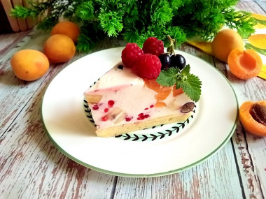 Предложу и я один рецепт летнего тортика без выпечки с фруктами.