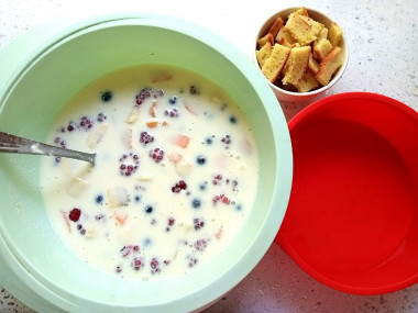 Наполнитель у меня из того, что было дома, а это: малина, черная смородина, маленький банан, абрикосы.