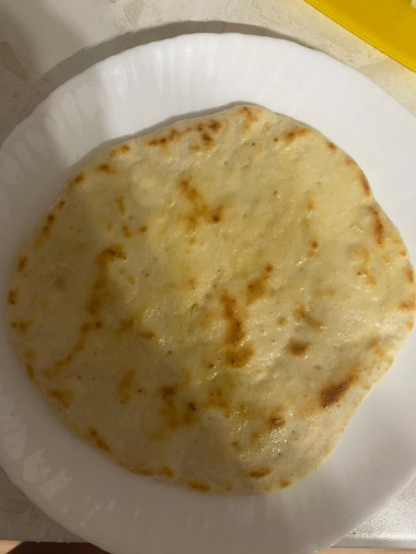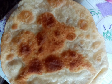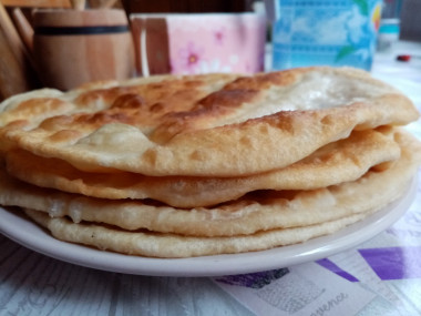 Все обжаренные лепешки поместите стопкой на тарелку. Немного остудите и подавайте к столу. Несмотря на то, что лепешки сделаны из пресного теста, они очень вкусные и мягкие. Их можно готовить просто так, либо как замену хлебу. Приятного аппетита!