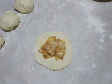 Раскатайте каждый кусочек в не тонкую лепешку, в середину выложите начинку.