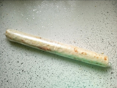 Как правильно свернуть лаваш рулетом? Сворачивайте аккуратно и как можно плотнее, чтобы начинка не вываливалась по краям, а сам лаваш не порвался. Если рулет не свернуть плотно, потом будет сложно нарезать его на красивые куски.