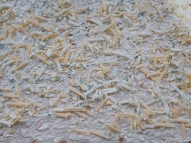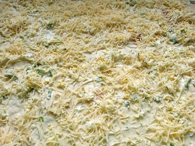 Сверху равномерно посыпьте поверхность тертыми яйцами.