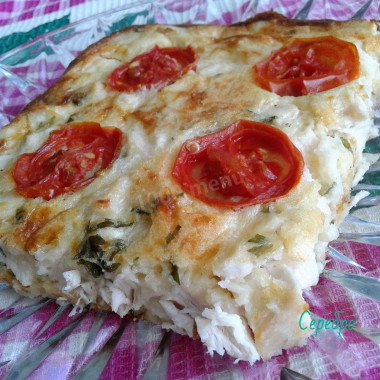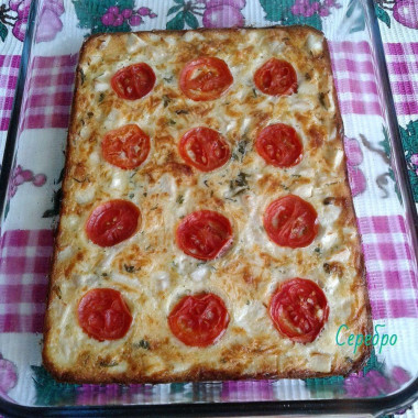 Вот такой пирожок-запеканка у меня получился,сверху украсила кружочками помидорок.