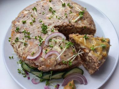 Делюсь еще одним крутым рецептом - сальтисон из свиной головы.