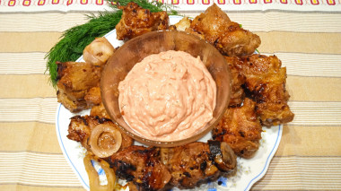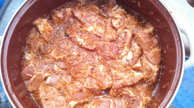 При желании можете при мариновании добавить в мясо немного жидкого дыма, тогда оно будет похоже на шашлык еще больше.