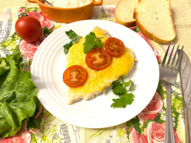Рецепт предельно простой, отбил мясо, сверху положил сыр и помидор, запек и добро пожаловать к столу.