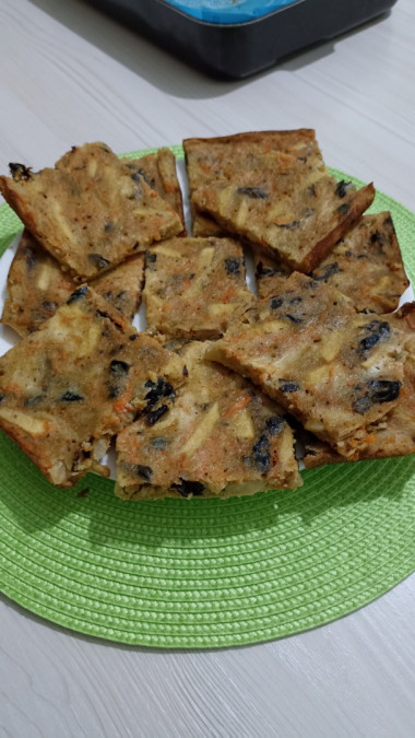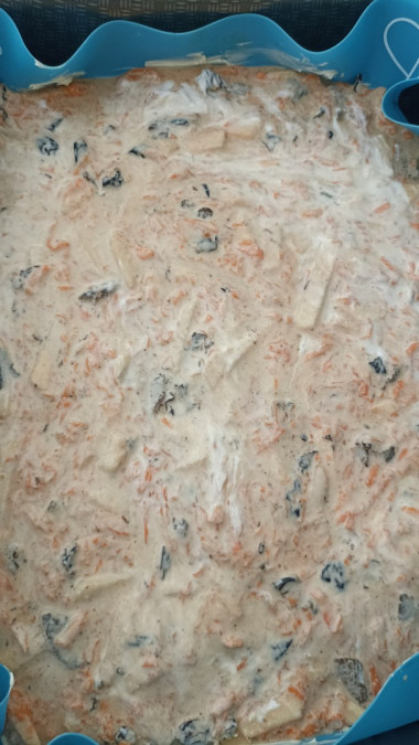Морковная запеканка с яблоками и черносливом готова, дать ей остыть.