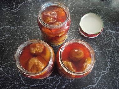 Понравился мне рецепт "слива в сиропе на зиму" своей простотой. Решила приготовить сливы по этому рецепту и много времени это не заняло. Сливы брала спелые, свежие, плотные, прям с дерева. Готовила четко по рецепту. Правда после трёх минутной бланшировки мои сливы полопались от счастья, наверное))) Сложила сливы в стрелильные баночки. Закипятила воду от слив с сахарным песком и лимонной кислотой. Попробовала сироп, я вам скажу, очень и очень вкусный, сливовый такой, насыщенный и цвет яркий. Залила сливы в банках сиропом и закатала. Простой и лёгкий способ заготовки. Целенькие сливы с косточками будут радовать зимой) можно и так скушать, и для выпечки использовать.