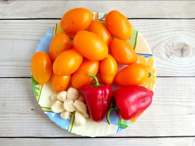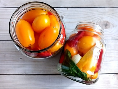 У меня были крепкие желтые помидоры. Решила заготовить их по рецепту маринованные помидоры с перцем на зиму. Очень люблю такие помидорки, да еще с чесноком и ароматным сладким перчиком!