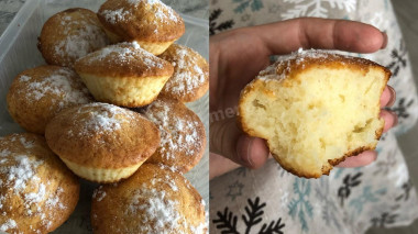 Очень вкусные кексы, пористые, в меру сладкие, пудрой даже не посыпала. Делала все в точности по рецепту, время выпечки не засекала, для сильно опытных кондитеров : готовность выпечки определяется по внешнему виду, запаху и деревяной палочкой, а не ждать пока угли будут)
