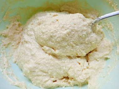 Тесто должно получиться вязким и однородным. Если тесто очень жидкое, то добавьте немного муки, если, наоборот, слишком крутое, то влейте немного кефира.