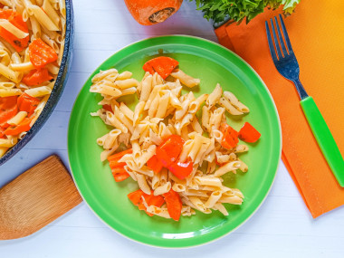 Очень понравился этот рецепт своей простотой и в то же время оригинальностью. И, конечно, тем, что посуды после надо мыть по минимуму))) Получилось очень вкусно. Морковь придала приятную сладость макаронам. В следующий раз попробую с другими овощами.