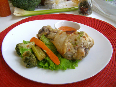 Переложите крылья индейки и овощи в рукав и завяжите его с обеих сторон. Положите рукав на противень или в форму для запекания и отправьте в разогретую до 180 градусов духовку на 40-50 минут. Точное время будет зависеть от особенностей вашей духовки. Узнать об особенностях работы духовок можно, прочитав отдельную статью, ссылка в конце рецепта. Можно несколько раз во время запекания перевернуть рукав, если боитесь, что блюдо подгорит (я этого не делала).