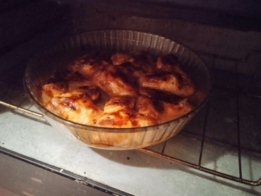 Добавьте в маринад мелко нарезанный лук, перемешайте и оставьте на полчаса мариноваться. Включите духовку на 220 градусов.