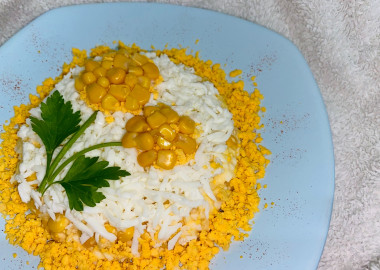 Симпатичный салатик, спасибо. Знаю еще один красивый вариант салата с кукурузой в виде Ромашки.