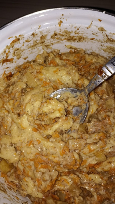Добавляю запечённую тыкву с яблоком и снова всё перемешиваю.