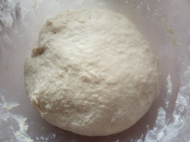 Постепенно всыпайте просеянную муку и замешивайте тесто. В количестве муки ориентируйтесь по консистенции готового теста. Оно будет мягкое, эластичное и не будет липнуть к рукам. Поверхность теста немного присыпьте мукой, накройте полотенцем и оставьте в теплом месте на 1 час, чтобы оно подошло.
