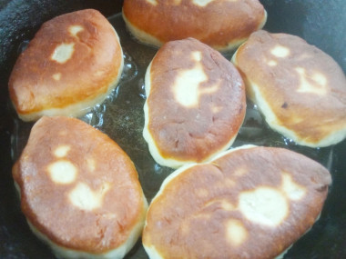 На горячую сковороду налейте растительное масло и выложите подготовленные пирожки. Обжаривайте их на небольшом огне со всех сторон до золотистого цвета.