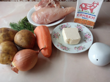 Как сварить вкусный сытный суп со сливками и курицей? Очень просто! Для начала подготовьте необходимые ингредиенты по списку. Для супа использовалась куриное филе, но подойдут и другие части курицы (бедра, голени, крылья). Сливки для этого рецепта могут быть любой жирности, но помните, что чем выше процент жирности используемых вами продуктов, тем выше будет калорийность блюда. У меня сливки 20%.