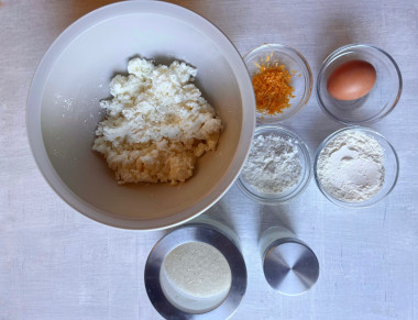 Как сделать пышные сырники из творога с рисовой мукой? Подготовьте для этого необходимые ингредиенты. Творог у меня 5 % жирности. Мягкий и не очень влажный.