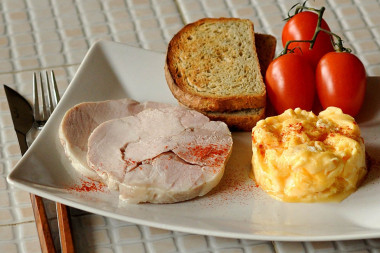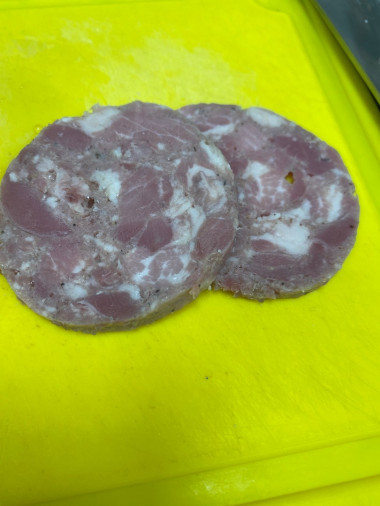 Ветчина отлично режется ножом на тонкие ломтики, не крошится, не ломается, прекрасно держит форму. По специям и соли - все гармонично. Спасибо автору за рецепт, рекомендую к приготовлению!