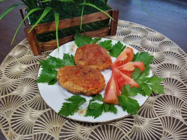 Сформировала гречаники и обжарила на сковороде с двух сторон. Выложила в форму гречаники,добавила томатный соус и запекла в духовом шкафу 10 минут.
