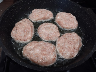 В тарелочку насыпьте немного пшеничной муки. Руками сформируйте котлетки из получившегося фарша и обваляйте их в муке со всех сторон. Включите духовку на 180 градусов.