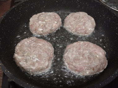На сковороде с толстым дном разогрейте растительное масло. Выложите на нее приготовленные котлеты. Обжаривайте зразы с одной стороны до румяности, переверните на другую сторону и обжаривайте также до румяности.