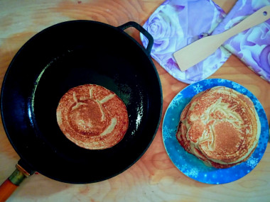 Жарить блины на манке удобно или в маленькой сковородке, или заливая в форму.