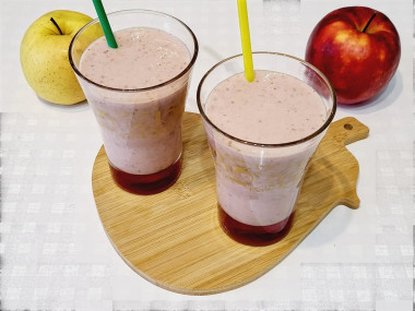 Сделала из банана, груши, замороженных земляники и малины с добавлением меда.