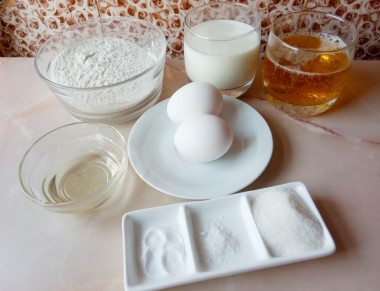 Испекла блины на пиве. У меня было светлое пиво, соды добавила совсем чуть-чуть, не люблю её привкус в выпечке, хотя сразу скажу, что запаха и вкуса соды я не почувствовала, но всё же в следующий раз попробую испечь блинчики вообще без соды, думаю, что дырочки всё равно будут за счёт наличия пива в тесте. Пропорции муки и жидкости - идеальные, тесто в меру жидкое, блинчики получаются тоненькие, в дырочку, к сковороде не прилипали. На вкус блины не сладкие- отлично подойдут как для фарширования несладкими начинками, так и для подачи с вареньем, сгущенкой- не будет излишне сладко. В процессе выпечки блинчиков в кухне стоял очень вкусный " хлебный" аромат, готовые блины также имеют лёгкий , пикантный привкус хмеля. Спасибо за рецепт, Мария!