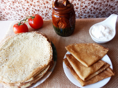 Рецептом заинтригована, надо будет испытать. Мне понравился способ замешивания теста на кефире и кипятке. Блинчики получаются действительно кружевными и с дырочками.