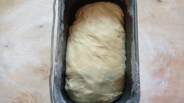 В чашу хлебопечки я сначала налила молоко, потом насыпала муки (600 гр). Затем добавила сахар и соль. Дрожжи у меня были сухие активные (в шариках), поэтому сначала я их развела в тёплой воде, а уже потом отправила к остальным ингредиентам. Последним я налила растительное масло. Хлебопечку выставила на режим "Тесто".