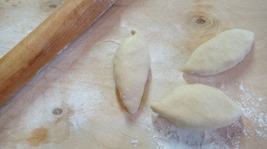 Тесто немного обомните и используйте для приготовления пирожков или пирогов. Чтобы тесто больше не просило муки, смажьте руки растительным маслом.