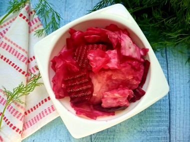 Если вы предпочитаете маринованной пелюстке квашеную со свеклой капусту, то этот рецепт как раз для вас. Рецепт такой капусты распространен меньше, чем маринованной, но именно она отличается от упомянутой большей пользой. В квашеной капусте количество витамина С только увеличивается. Поэтому ее полезно давать детям, и вообще есть всем в течение зимы. Подавать квашенку можно к отварному картофелю, любому мясу, в качестве закуски на праздничный стол.