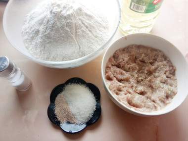 Как сделать пирожки заварные на дрожжах, жареные на сковороде? Подготовьте все необходимые ингредиенты. Так как тесто готовится очень быстро, начинку для пирожков нужно приготовить раньше, чтобы можно было сразу переходить к их жарке.