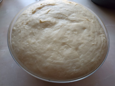 Муки может понадобиться чуть больше или чуть меньше указанного количества. Ориентируйтесь на консистенцию теста: оно получается гладкое, эластичное. Тесто слегка липкое, но не прилипает к рукам. Положите его обратно в миску, накройте полотенцем или пищевой пленкой и поставьте в теплое место на пару часов. За это время, когда тесто поднимется, обомните его и дайте еще раз подняться.