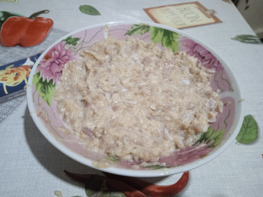 Массу хорошо перемешайте. Считается, что мясо любит руки, поэтому фарш до однородности лучше перемешивайте руками. Фарш для котлет должен стать сочным и слегка влажным, если молоко дает недостаточно влаги, можно добавить немного воды. Достаточно будет пары столовых ложек.