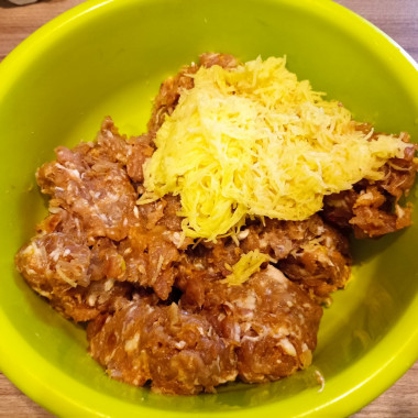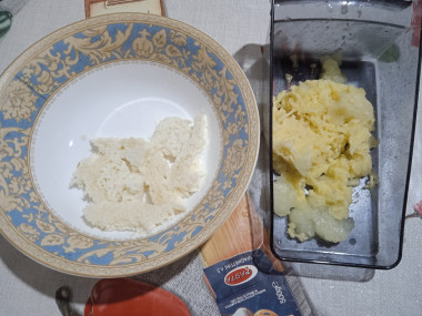 Картофель помойте, очистите и натрите на средней терке. Сок из картофеля не отжимайте — крахмал, содержащийся в картофеле, позволит сделать фарш более пластичным и липким. Добавление картофеля сделает котлеты более сочными и сытными. С этой же целью в фарш добавляют хлеб. Пару кусочков черствого белого хлеба замочите в молоке, чтобы он разбух, затем разомните его ложкой в однородную массу.