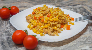 А можно приготовить сразу блюдо два в одном, добавив курицу.
