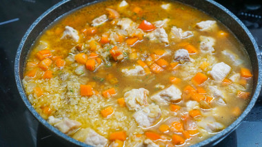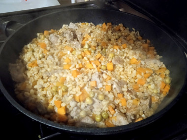 За это время булгур впитает в себя всю воду и станет мягкий. И мясо успеет полностью приготовиться.