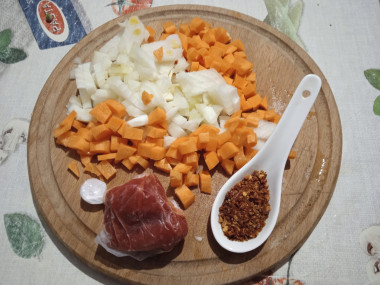 Лук мелко нарежьте. Морковь можно нарезать крупными кусочками и натереть на терке.