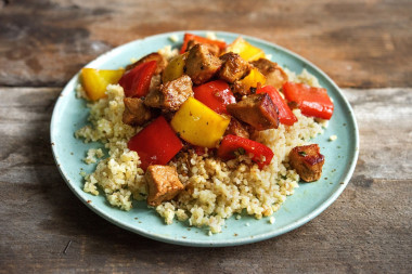 Отличный ужин! Семья оценила по достоинству! Булгур с мясом свинины и овощами на сковороде - это сытно и очень вкусно. Для приготовления я выбрала яркий мясистый болгарский перец. Свинину выбрала вырезку. Всем было очень вкусно, спасибо за рецепт!