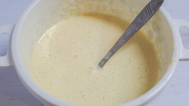 Яйца вымойте с мылом. Разбейте их в глубокую миску и взбейте. До появления пены взбивать не нужно.
