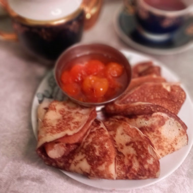 Вот и началась масленичная неделя, блины готовятся полным ходом! Что приготовить из прокисшего молока быстро и не заморочисто? Конечно же, тонкие блины из прокисшего молока. Нашла на сайте подходящий рецепт блинного теста на прокисшем молоке и следовала рекомендациям автора. Подготовила необходимые ингредиенты, замешала тесто. Блинчики жарила на обычной сковороде, на которой готовлю ежедневно. Блинчики выпекала с каждой стороны примерно по полминуты до золотистости. Готовые блинчики смазала сливочным маслом и подала к чаю с черничным вареньем. Блины получились вполне себе тонкими и вкусными! Спасибо автору за рецепт.