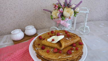 Из указанного количества продуктов получается примерно 20 блинов диаметром 22 см.