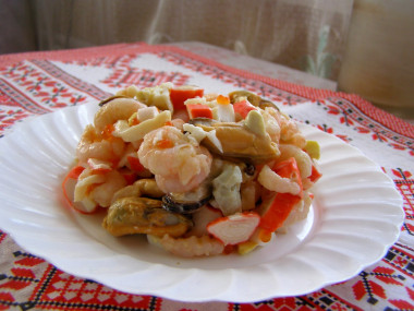 Невероятная вкуснятина - приготовила, не пожалела! Крабовый салат с креветками готовила на романтический ужин, еще и мидий добавила, гулять так гулять! Вместо майонеза заправила натуральным йогуртом. Любимый оценил. Огромное спасибо!!!