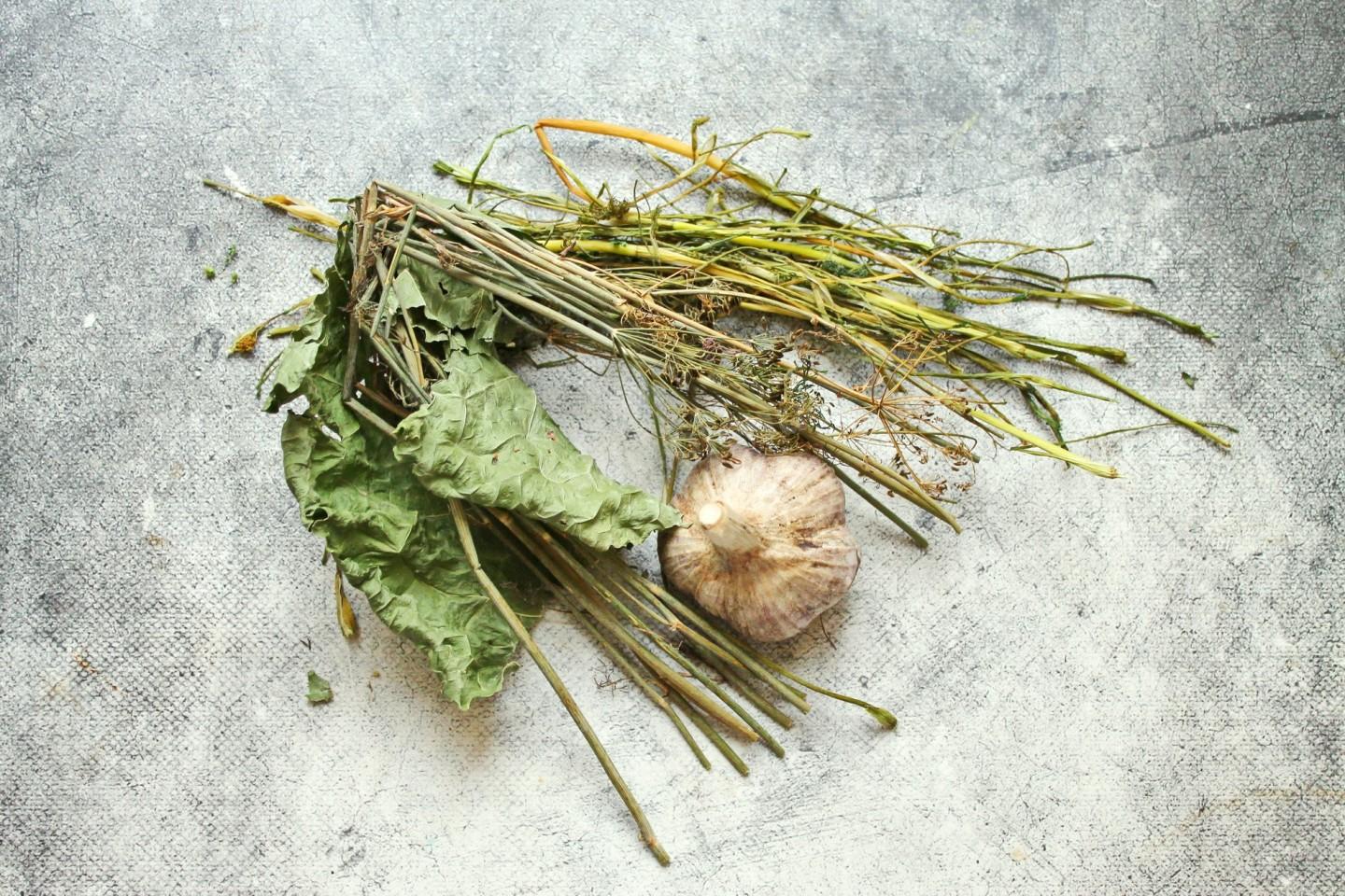 Чеснок очистите от оболочки и вместе с зеленью хорошо вымойте в теплой воде. Можно взять не только свежую зелень, но и сушеную, так же добавить лавровый лист, душистый перец. Банки вымойте в горячей воде с пищевой содой простерилизуйте любым удобным способом. Подробнее о стерилизации читайте в конце рецепта.