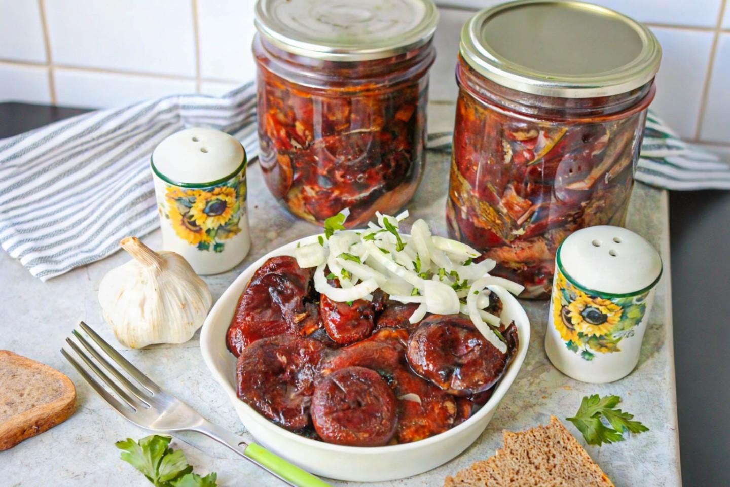 Рецепт сам по себе вегетарианский. Количество соли строго регламентировано и уменьшать его не рекомендуется, так как это может нарушить процесс консервации и привести к порче продукта.
