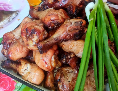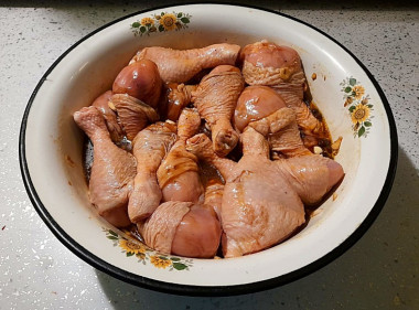 Среди множества вариантов маринада для курицы мне больше всего нравится тот, который содержит в составе соевый соус. Мне нужно было замариновать голени. Выбрала на сайте самый подходящий на мой взгляд рецепт соевого маринада для курицы в духовке. Приведенной порции мне как раз хватило на 20 куриных голеней. Очень удобно, что не нужно солить, не ошибешься с пересолом) Чеснок решила просто порубить ножом. Лимонный сок придает мясу свежесть и приятную кислинку, к тому же делает мясо нежнее. Ну а растительное масло нужно для румяной корочки. В общем здесь есть все, что нужно! Мариновались голени с вечера до следующего обеда. Периодически перемешивала их, чтобы маринад лучше распределился. Вот такие красивые куриные ножки у меня получились благодаря этому вкусному и ароматному маринаду.